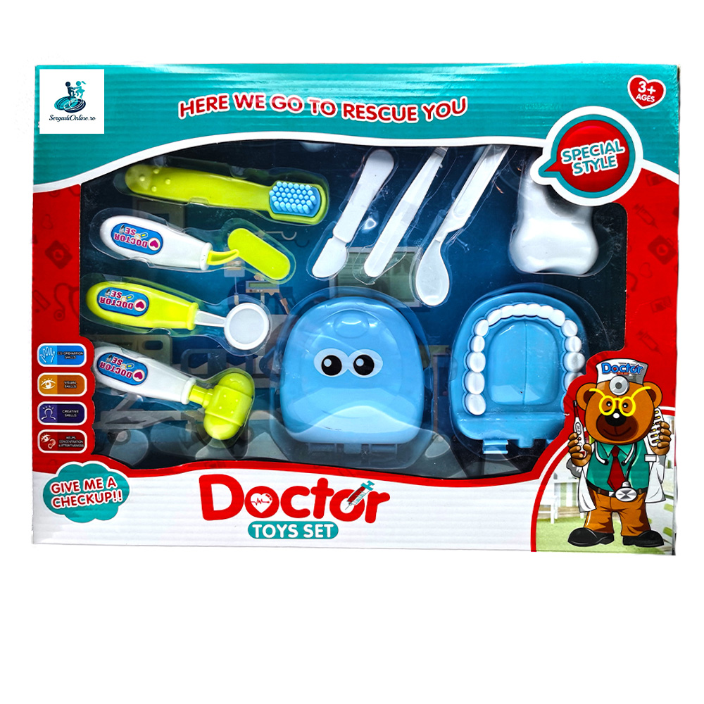 Trusa medicala pentru micii medici stomatologi, va fi o incantare a micutilor in joaca lor „de-a doctorul”. Piesele incluse in pachet imita foarte bine ustensilele si accesoriile unui medic.